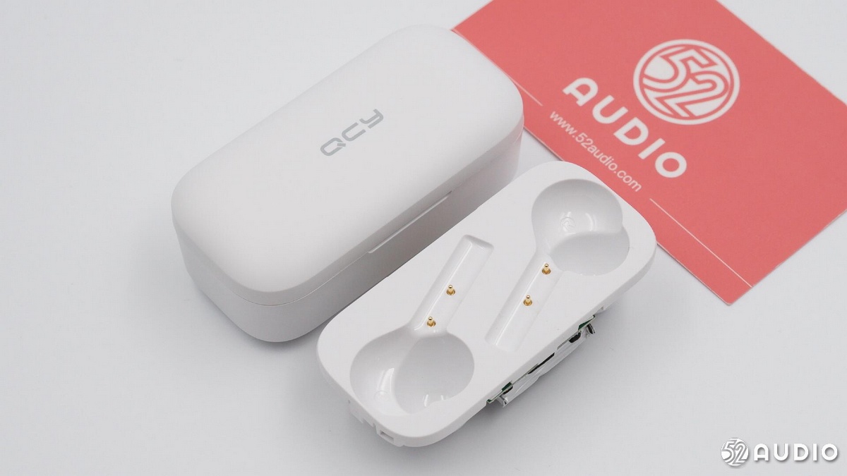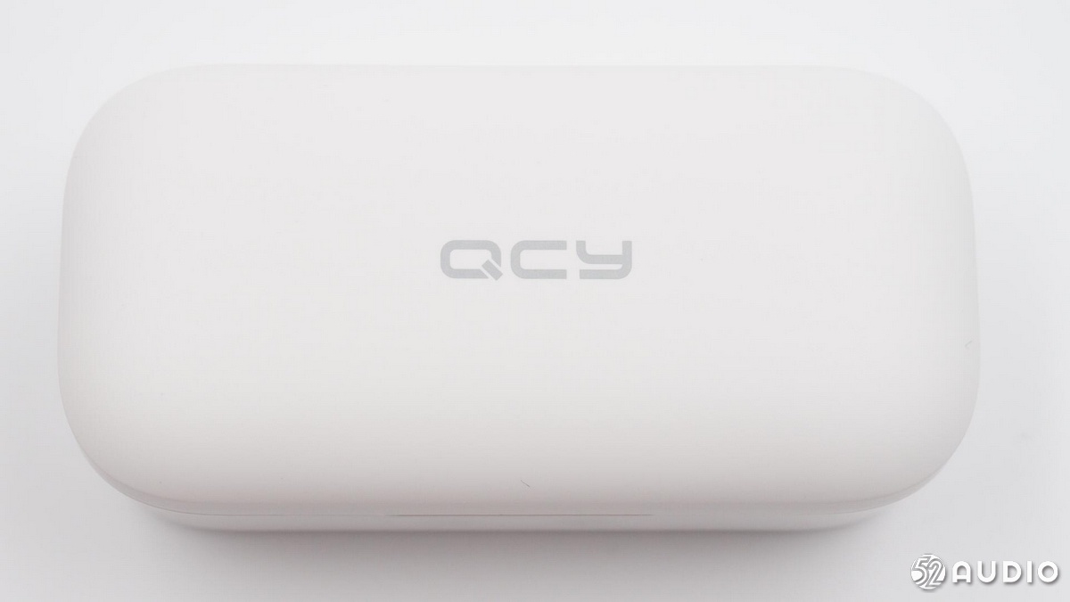充電盒為“肥皂盒”造型,手感比較細(xì)膩,頂部是QCY的品牌Logo。