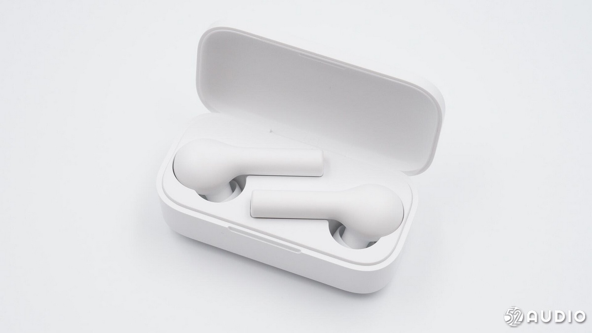 耳機(jī)橫置在充電盒內(nèi)。