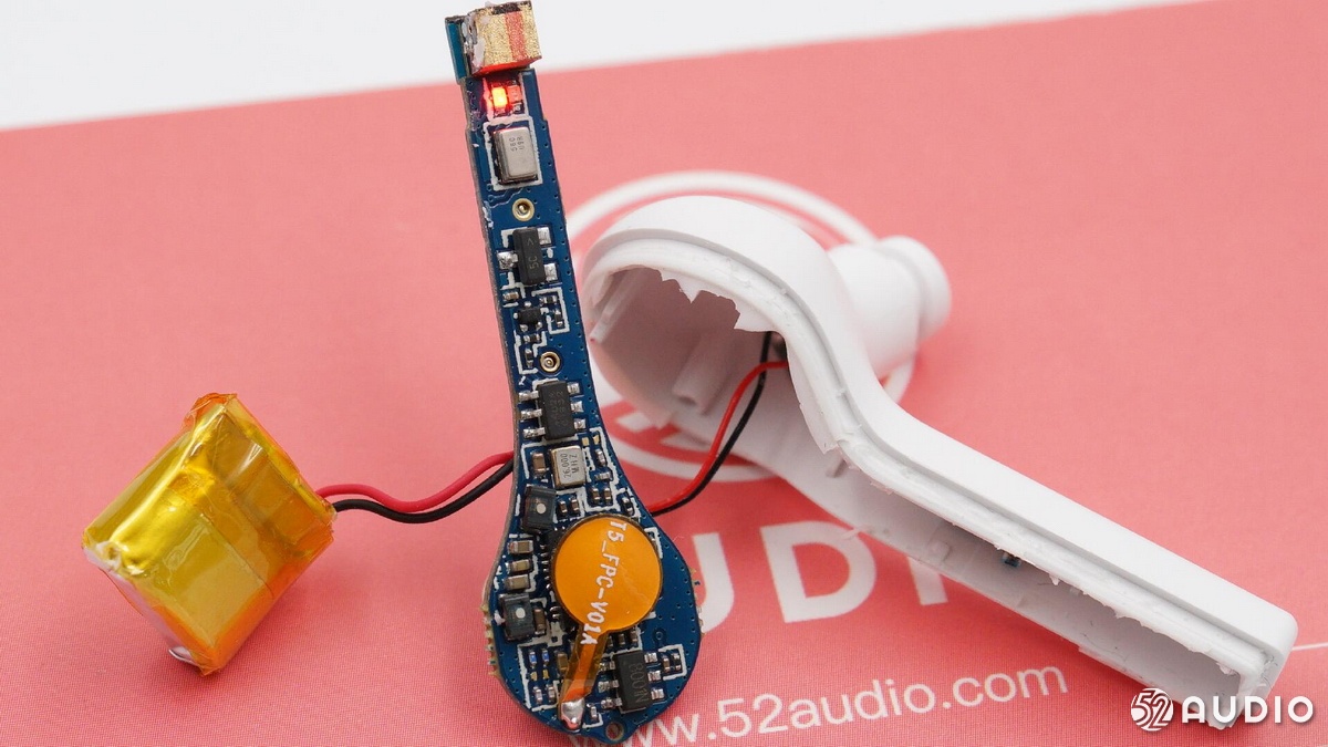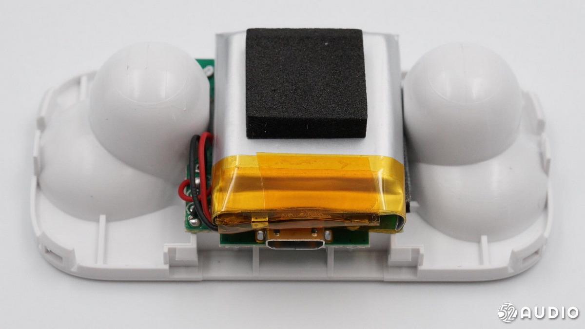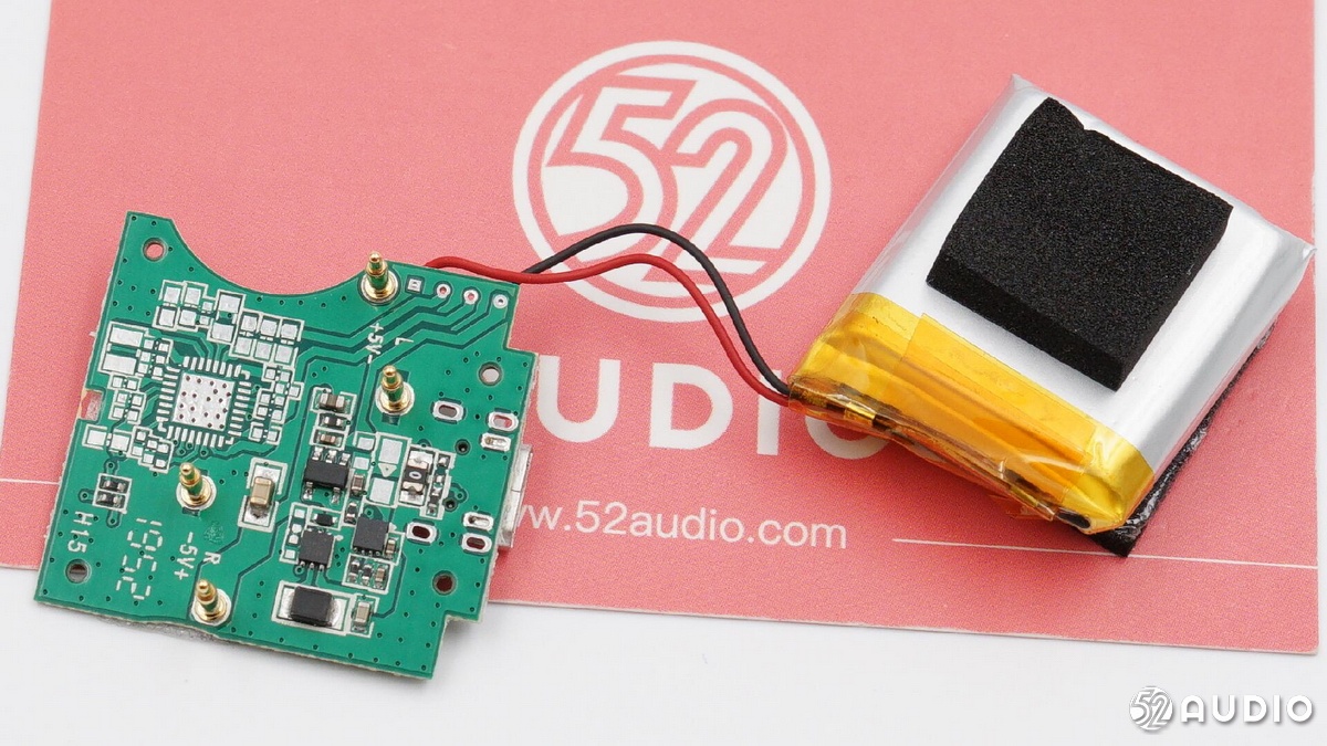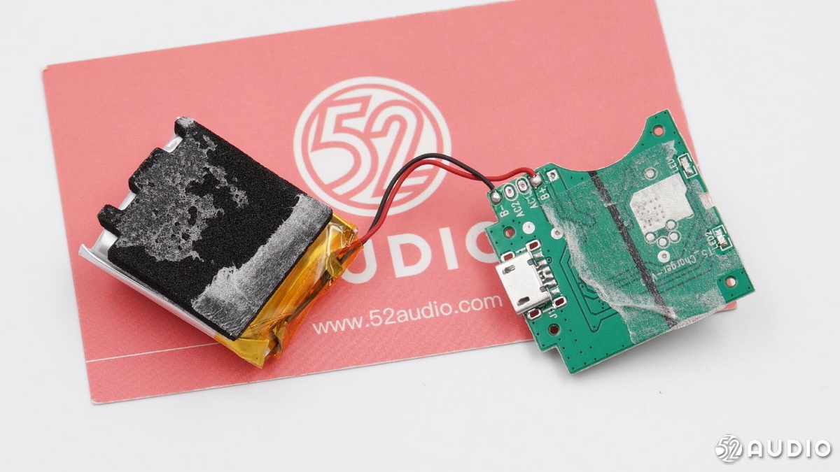 耳機(jī)內(nèi)部電路一覽,電池和揚(yáng)聲器通過導(dǎo)線連接至主板。