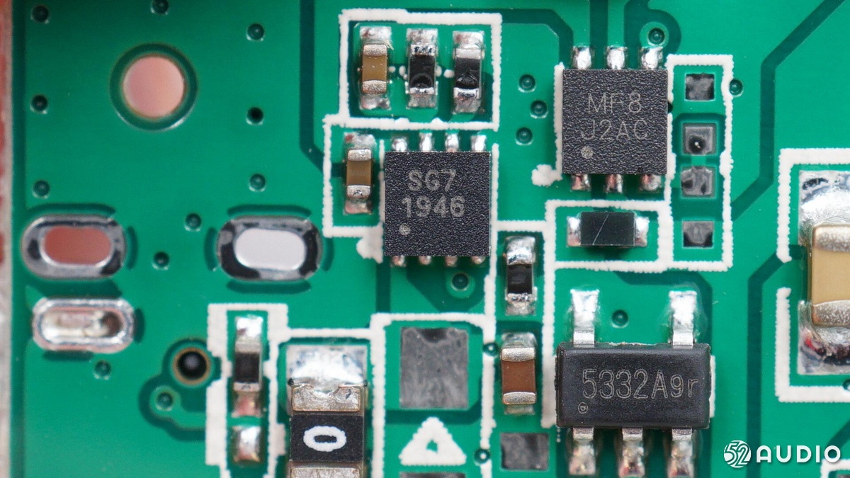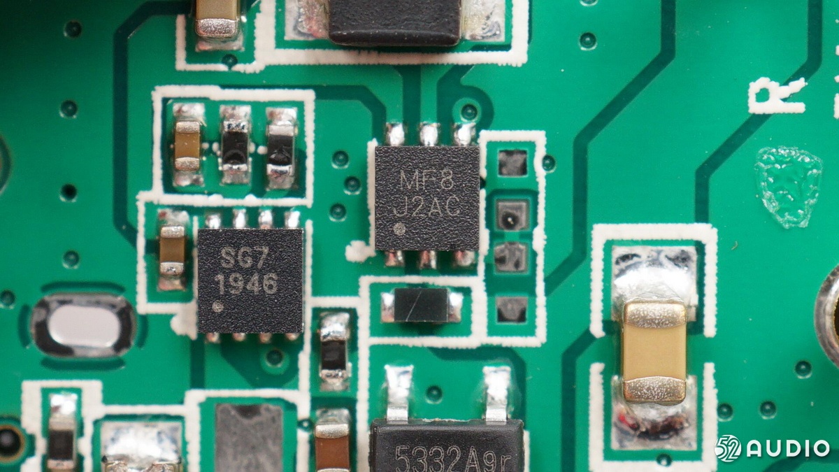絲印 MF8的同步升壓IC,將內(nèi)部電池升壓為耳機(jī)充電。