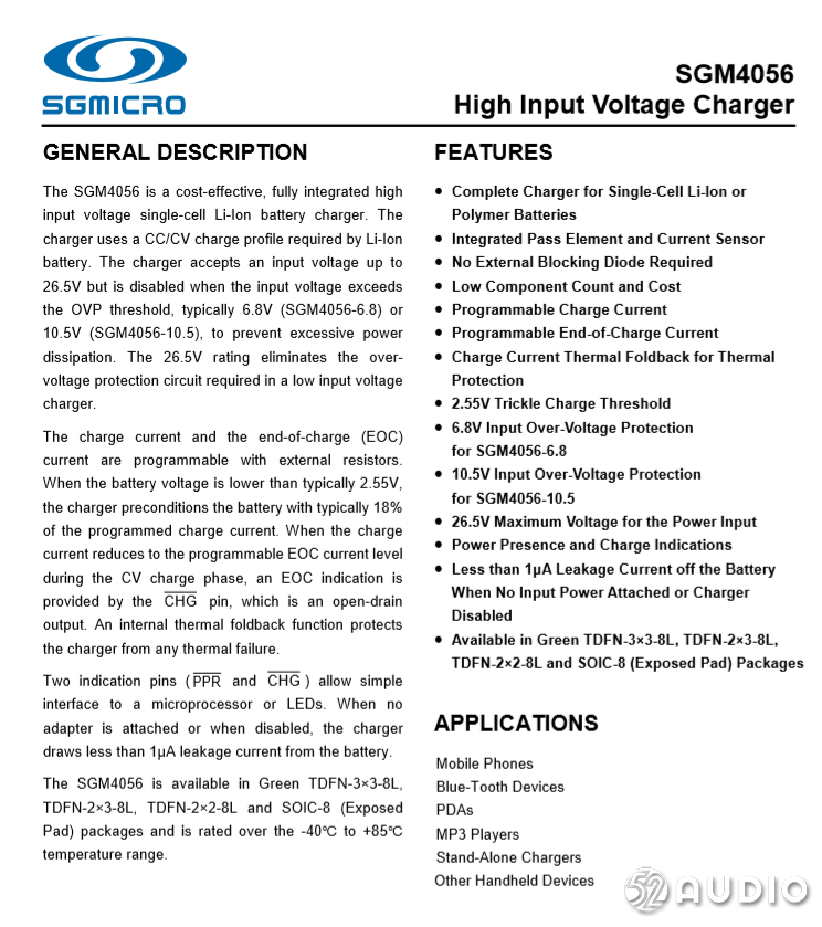圣邦威 SGM4056 詳細(xì)資料。