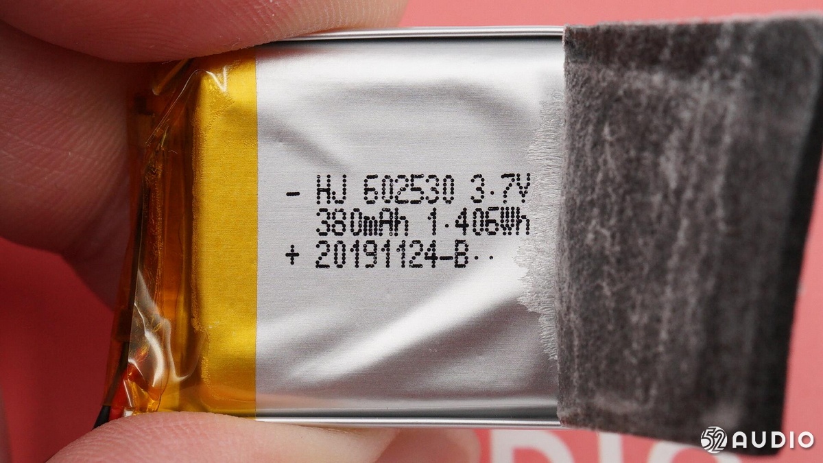 電池信息,“HJ 602530”,額定電壓3.7V,額定容量380mAh/1.406Wh。