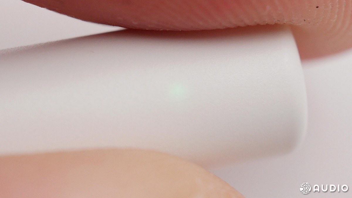 耳機(jī)柄底部,外側(cè)隱約可以看到指示燈,指示燈位置的殼體特意做的比較薄。